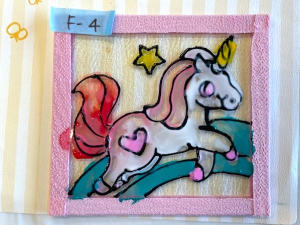 ガラスプレートに専用の絵の具で色をつけ、自分だけのオリジナル作品を作ってもらいました°˖✧