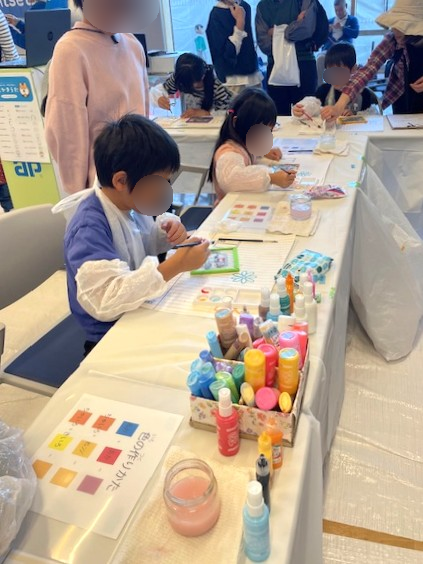 当社ブースでは、子ども向けの【ガラスぬりえ体験】を実施しました。