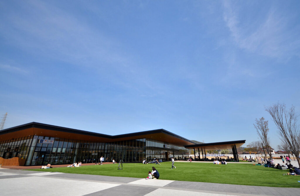 公園内には、芝生エリアやドッグラン・ふわふわドーム・有料遊び場・カフェなどがあり、大人から子どもまでゆっくり楽しむことができます。