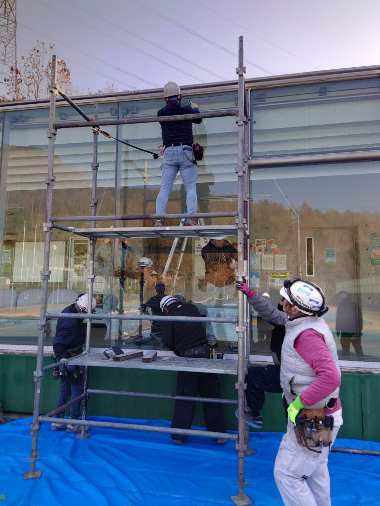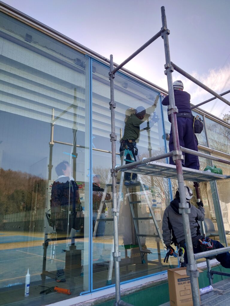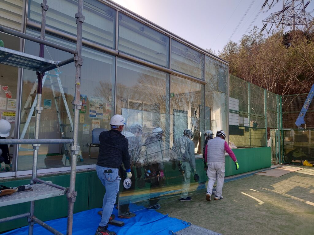 【高槻市】萩谷総合公園テニスコート 窓ガラス割替工事