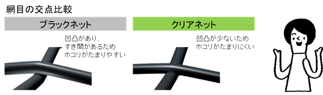 従来品に比べて網目の凹凸が少ないので、ホコリがたまりにくい構造になっています。お手入れがラクになるのは嬉しいですね!